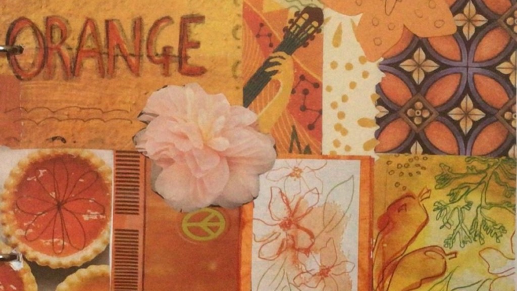 You don’t have to keep a journal – just look around you and train yourself to become more aware of the role of colour in your life. Your choice of clothing is one obvious way to incorporate more of a particular colour and consequent mood shift into your life, but look also at your immediate surroundings, your decor, even your food choices… having a bowl of tomatoes or oranges in the kitchen to look at may make you feel more cheerful than a bunch of black grapes! Here’s a little more detail on red, orange and yellow with some colour collages to give you the idea and test your responses: