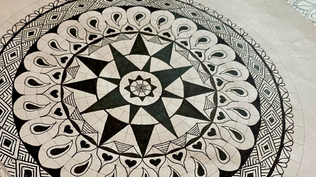 Our Mandala teacher Taryn proudly commented: “Their work was superb, all so unique and beautiful! Many were skeptical that they could create their own at the beginning of the class and no-one had done one before. All of these are unique creations, no copies!”
